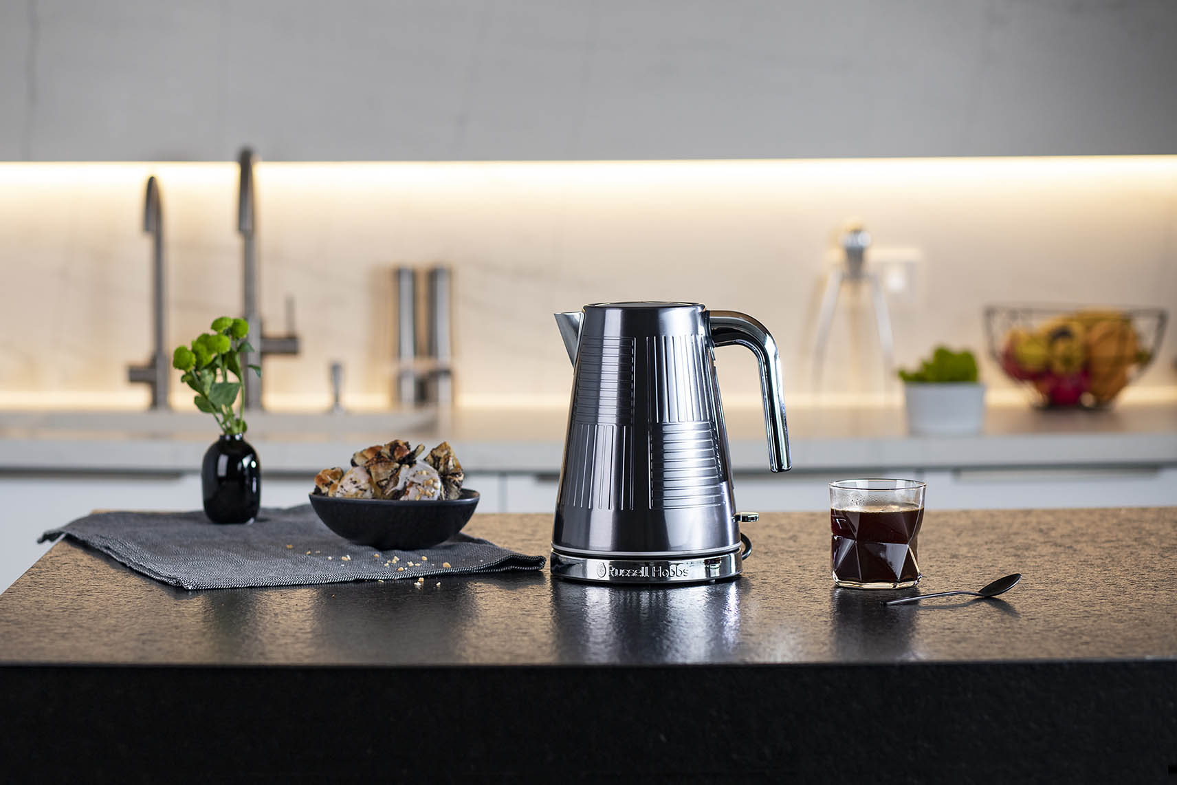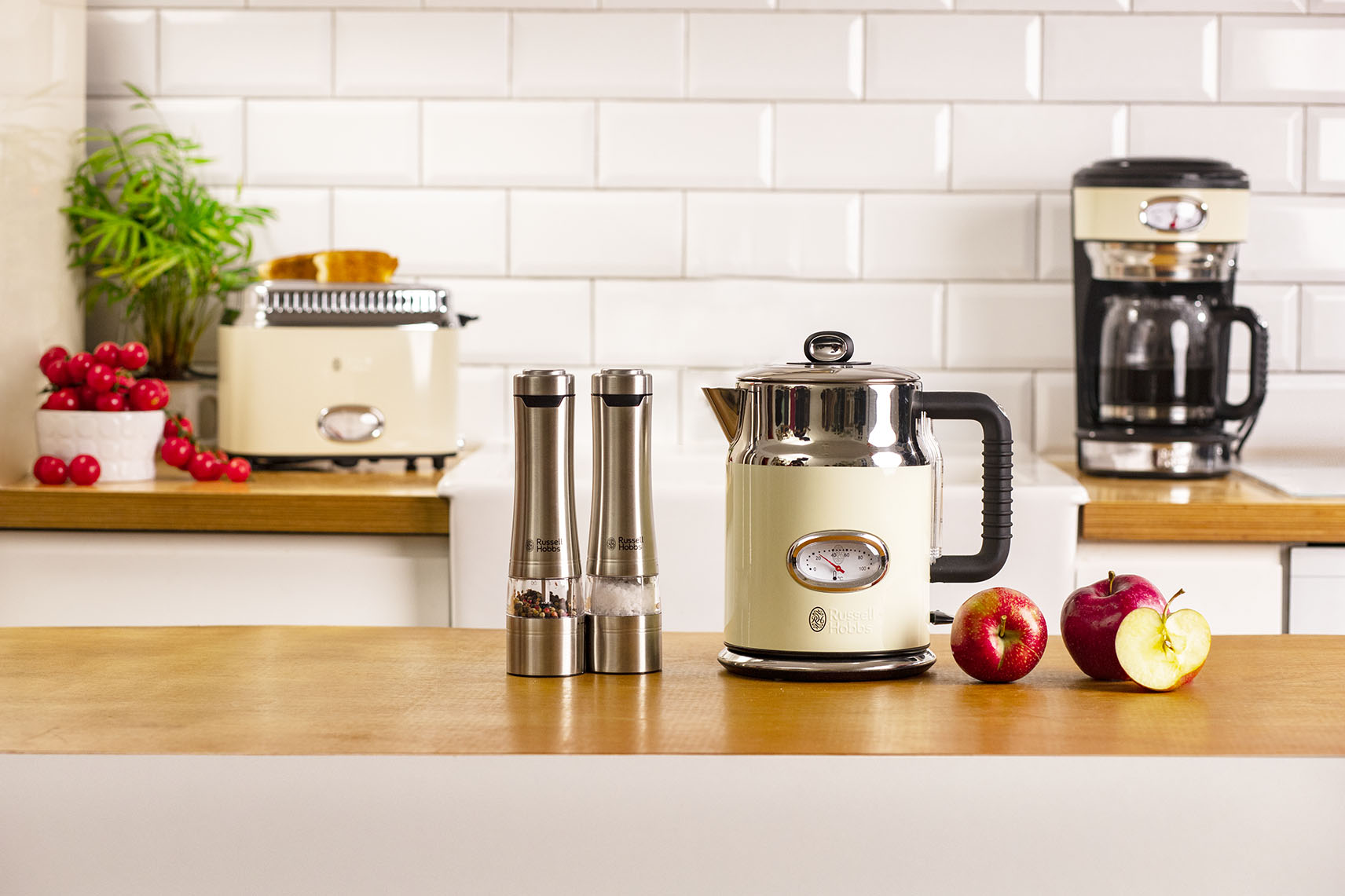 About: Russell Hobbs is a British icon specializing in small domestic appliances. The versatile design of the company’s appliances allows them to be used in almost any interior, no matter what style it is. The same idea guided the photo shoot organized for the buy&get consumer campaign. Each product series was perfectly suited to a specially arranged kitchen space, which emphasized the character and beauty of the respective appliance. In addition to functional kettles and toasters, cutlery was photographed as one of the prizes guaranteed in the promotion.